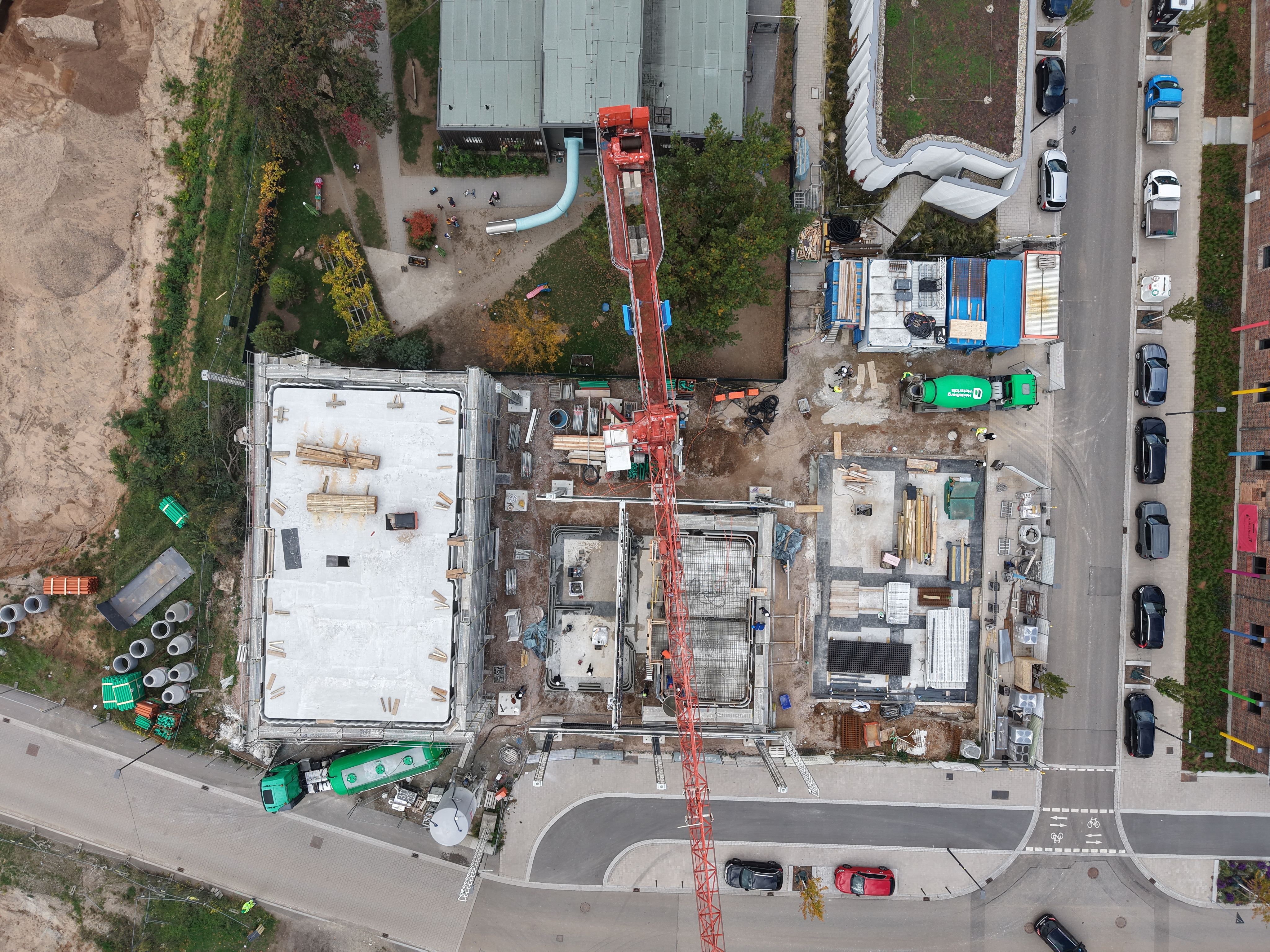 Flygfoto över det tyska DREIHAUS-projektet i Heidelberg.